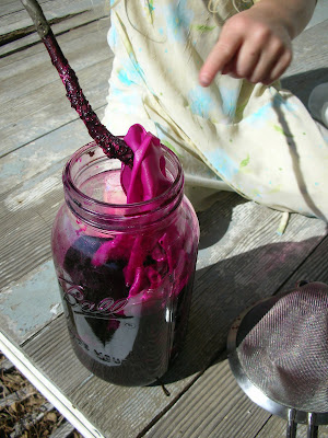 this month’s blog party is all about the beautiful side of herbs. cory at aquarian bath is hosting. swing by her blog to see all the submissions after dec 1. we have a lot of fun dying silks using herbs. our two favorites are poke berries and black walnuts. it takes about 2 weeks total to do. all sorts of herbs can be used. i’ve even used dandelion blossoms to make a pale yellow. goldenrod, elderberry and st. john’s wort all make great dyes too! poke berry is not color fast, but it is such a lovely color that we just try to re-dye our silks each year. to dye silks, first, i fill a half gallon jars with the herb i am using. i mashed any berries a bit in their jar (the walnut hulls i just break up roughly & stuff in. i add enough water to fill each jar to the top. then i set them out in the sun for about a week, shaking every day. the next week, i strain out the plants and add 1/4 teaspoon of alum to each jar. you can find alum in the spice section at the grocery store. i push them in with a stick and make sure they are covered. then i let them sit for up to another week, shaking & stirring daily, turning them with a stick to get all areas evenly exposed. the longer they sit, the darker they get. drain out the liquid and rinse with cool water until the water is clear. black walnut rinsed and wet: black walnut dry. can you see the leaf design??? that was a total accident caused by wrinkled fabric but a really nice one. now all that’s left to do is play with them! these make GREAT gifts for friends! natural herbal dyes can be used to dye all sorts of natural fibers from wool to cotton to silk to linen. each fiber will naturally dye a little differently. another fun temporary dye using poke berries is for hair dye. poke is not very colorfast, even with alum. when used on hair, it washes out very easily but is a fun way to spice up your hair. simply mash, paint on with your fingers or a wide paint brush and viola! |
