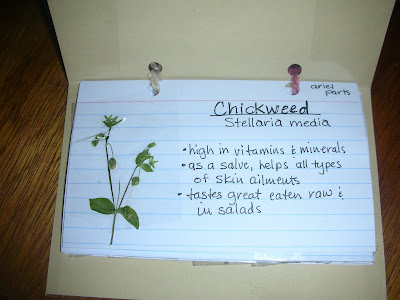 Now place your completed card back into the Herbarium. I have found it stays more balanced if I rotate the placement of the herbs on the sides of the card I tape them to. If you choose to place your specimens on one side and your information on the other, this will not be a problem. To make it easier to refer back to your specimens, alphabetize them as you add them into the file, keeping all the blank cards in the back. This simple pocket Herbarium will make it easy for you to quickly identify and remember herbs and their uses when you need them! I hope you make one and add to it each month when you learn about a new herb. If you are unable to harvest a real herb (such as this month, you can find a picture on the internet, print it off and glue or tape it into the spot where the actual plant would go. Then, later if you find an actual plant specimen, you can replace it with the real thing! |